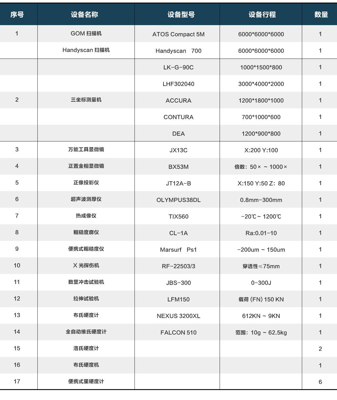 檢測(cè)設(shè)備清單